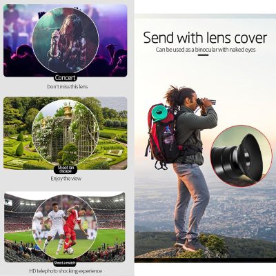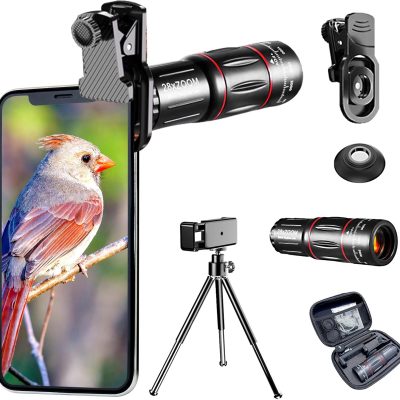 28x Optical Zoom HD Phone Camera Lens 5 in 1 Kit for iPhone and Android with Tripod + Telephone Zoom Lens + Lens Cover + Clips, Support Hand-held, Eye View, Spot Shooting, 4K HD Telephoto