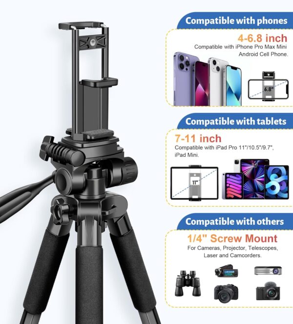 The JOILCAN Tripod for Camera is the perfect companion for all your photography adventures. This 81″ camera tripod stand is designed for stability and durability, making it ideal for DSLRs, binoculars, laser levels, spotting scopes, and telescopes. With a maximum height of 83 inches, this tripod allows you to capture stunning shots from various angles.