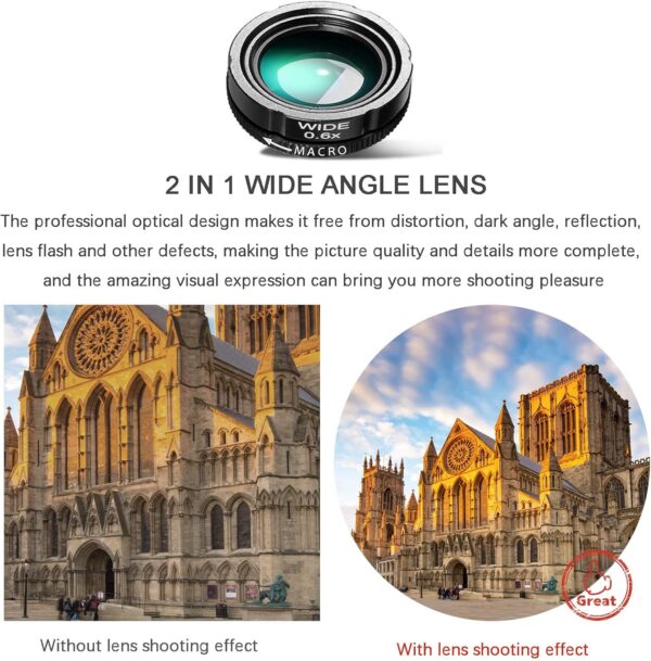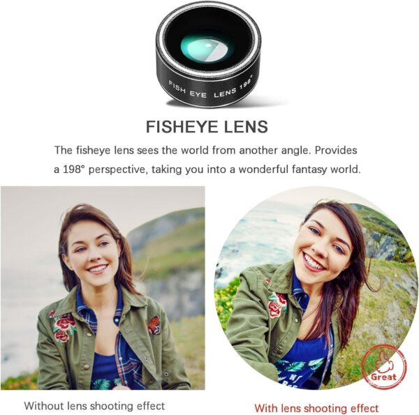 Capture stunning photos with this Phone Camera Lens Kit Upgraded Version. This kit includes a telephoto lens with 28X magnification, a wide-angle lens with 0.6X magnification, a macro lens with 20X magnification, and a fisheye lens with 198° field of view. Perfect for most smartphones, this lens kit is easy to attach and use, allowing you to take professional-quality photos on the go. Whether you’re capturing landscapes, close-up details, or fun fisheye shots, this lens kit has everything you need to enhance your photography skills. Say goodbye to blurry or dull smartphone photos – with this lens kit, your images will be sharper, clearer, and more vibrant than ever before. Order yours today and start capturing memories in a whole new way.
